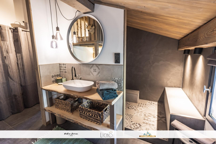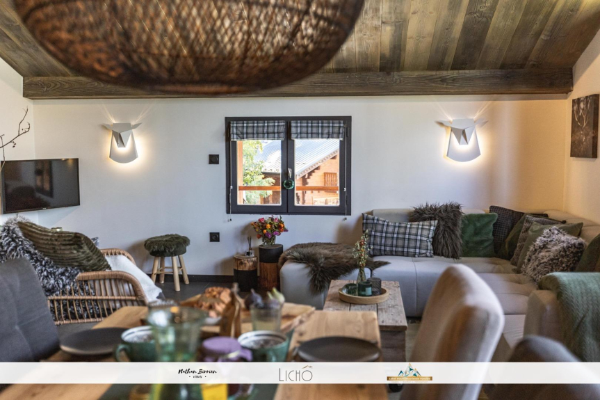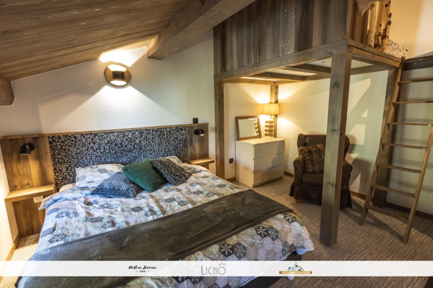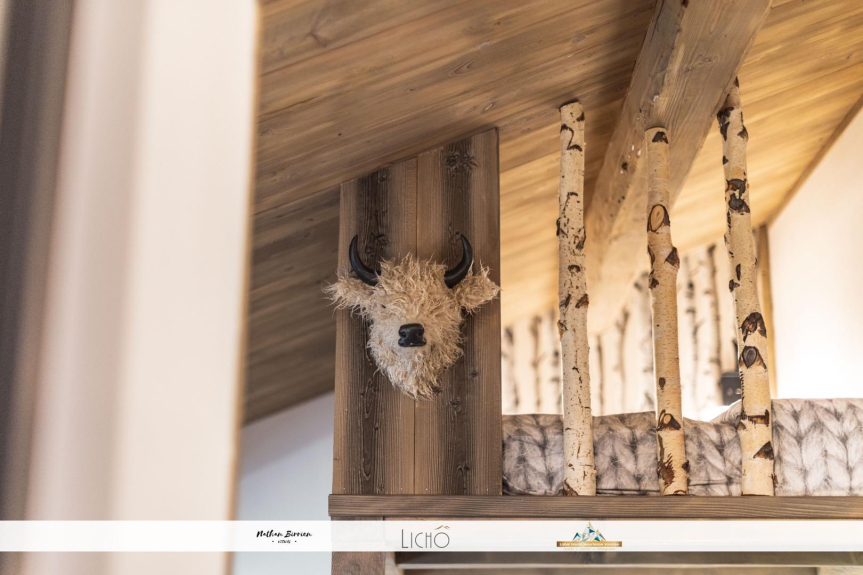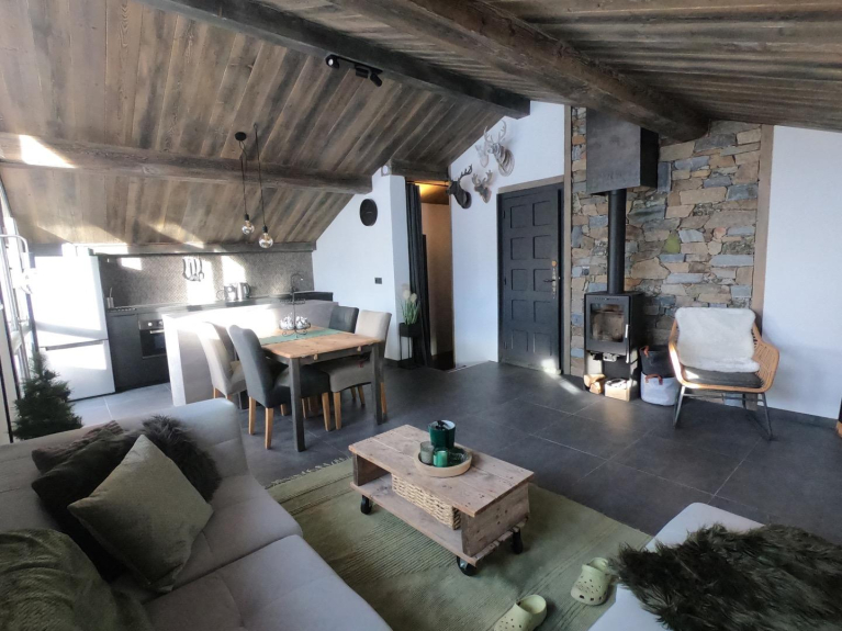 L'appartamento si trova al secondo piano e mezzo di uno chalet di montagna in pietra a secco. È composto come segue: una camera da letto principale con un letto di 160 cm, un mezzanino con un letto di 140 cm, un bagno con una grande doccia italiana, un WC separato, una grande cucina aperta su una sala da pranzo e un soggiorno.