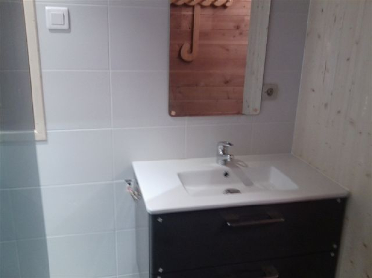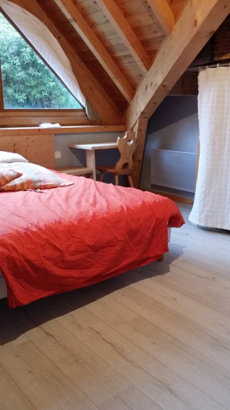 1 camera con letto matrimoniale (1m60 di larghezza) e bagno (lavabo e cabina idromassaggio)
