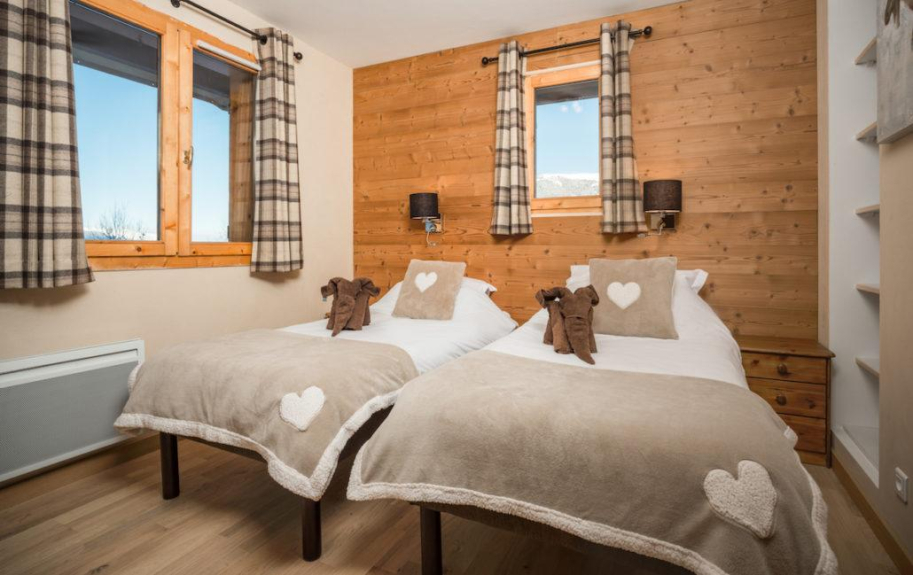 Lo chalet è diviso in camere per 2 persone, tutte con bagno. I bagni sono dotati di tutti i comfort necessari, compresa una gamma di prodotti della collezione "l'Occitane".