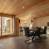 Soggiorno molto caldo e luminoso con mobili in legno di design contemporaneo e cucina integrata aperta al (molto) grande soggiorno.