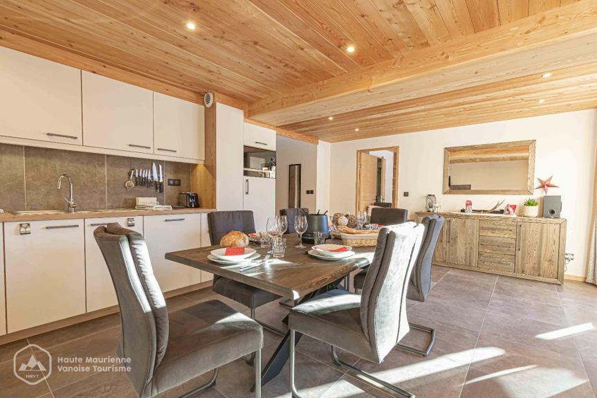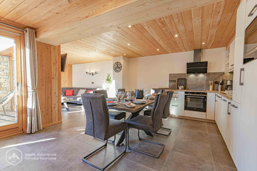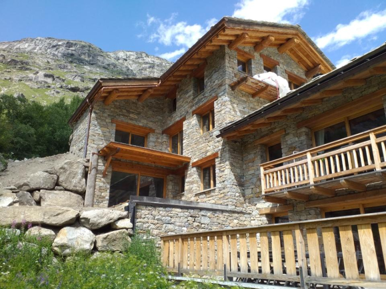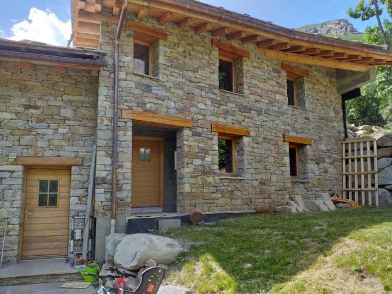 Magnifico chalet tradizionale in pietra coperto di lauzes, soleggiato, tranquillo. Deposito sci e asciuga scarponi all'ingresso dello chalet.