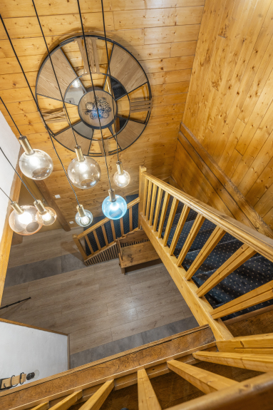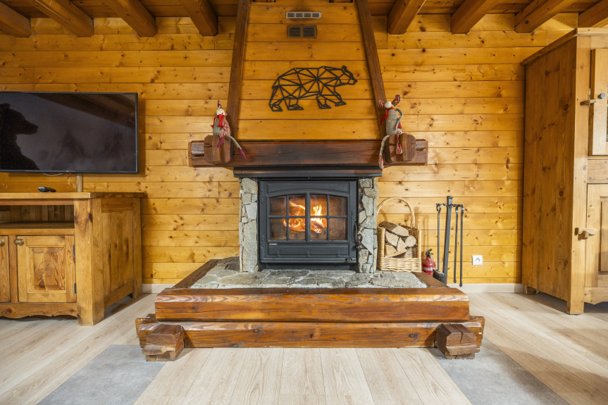Deposito sci, parcheggio, giardino, camino.