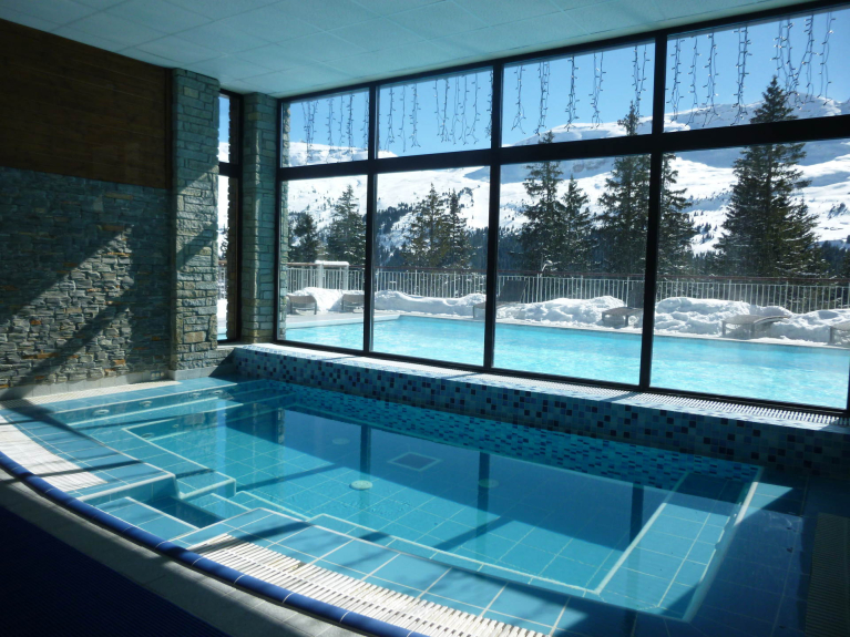 Residenza turistica a 5 stelle situata nel quartiere di Flaine Mont Soleil ai piedi delle piste e a circa 400 metri dai negozi. Posti auto coperti. Ascensori. Armadietti per gli sci.