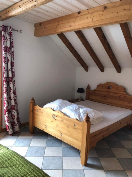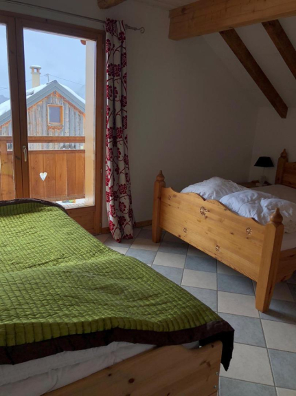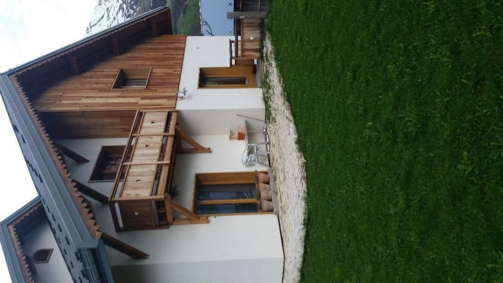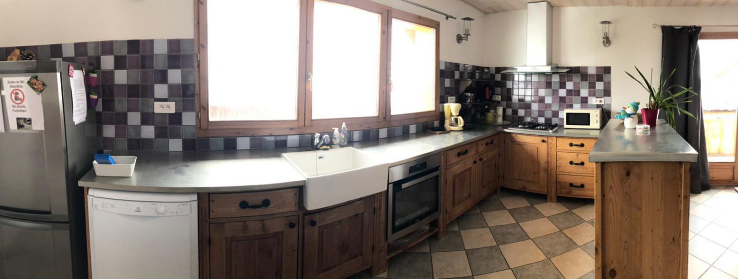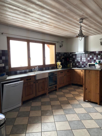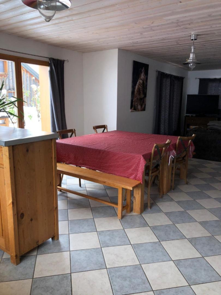 Appartamento per 12 persone in uno chalet a 50m dalle piste. Appartamento di 120m2 con soggiorno, cucina, camera e doccia italiana al piano terra.
