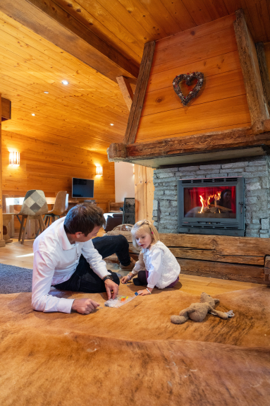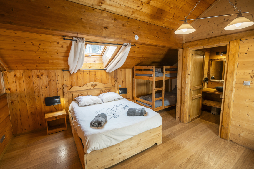 Questo chalet di lusso può ospitare fino a 12 persone in una calda atmosfera con camino, wifi gratuito ecc.
