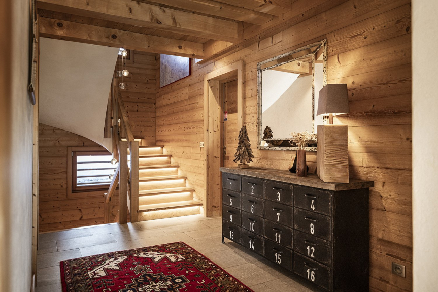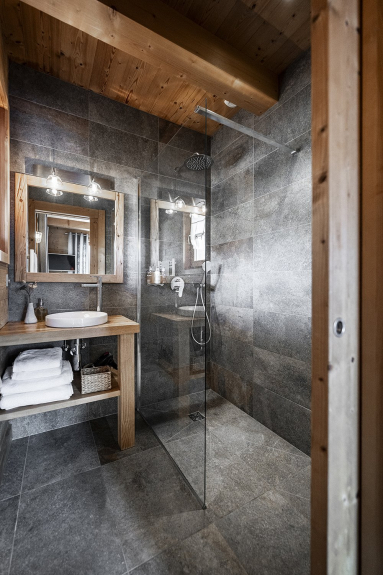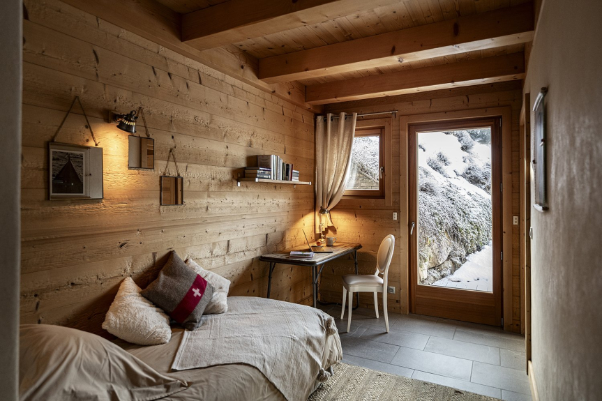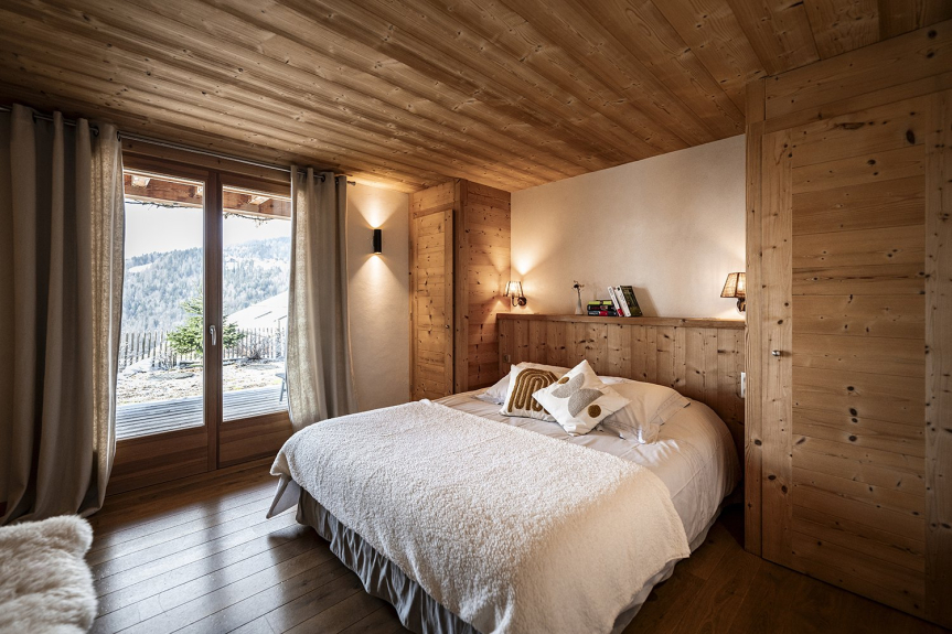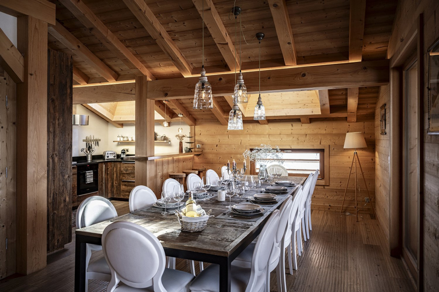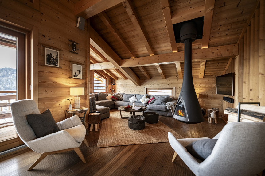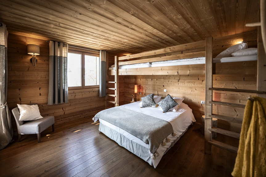 Chalet Celeste ha 5 camere da letto, ognuna con un balcone o una terrazza, tutte con una vista eccezionale sulle Alpi. Hanno tutte lenzuola di alta qualità, una TV 46', un armadio a muro e un bagno privato. L'area benessere comprende una Jacuzzi a 8 posti, una sauna a 6 posti e una doccia. Dotato di un deposito sci riscaldato, lo Chalet Celeste offre un accesso diretto alle piste. All'ultimo piano, sotto un magnifico tetto mansardato, si trova la zona giorno con una cucina completamente attrezzata, un soggiorno e un salone con un camino centrale sospeso e girevole. C'è una magnifica terrazza coperta con un tavolo per 15 persone e una zona lounge. Chalet Celeste ha anche 2 posti auto in un garage coperto sullo stesso livello, con accesso diretto alla zona giorno.