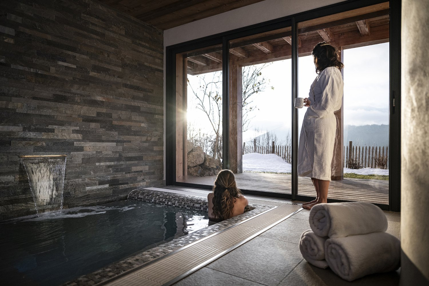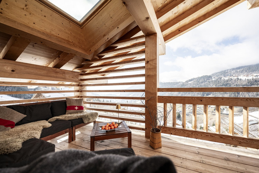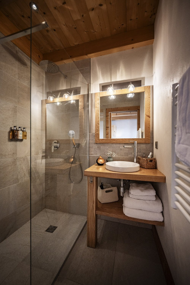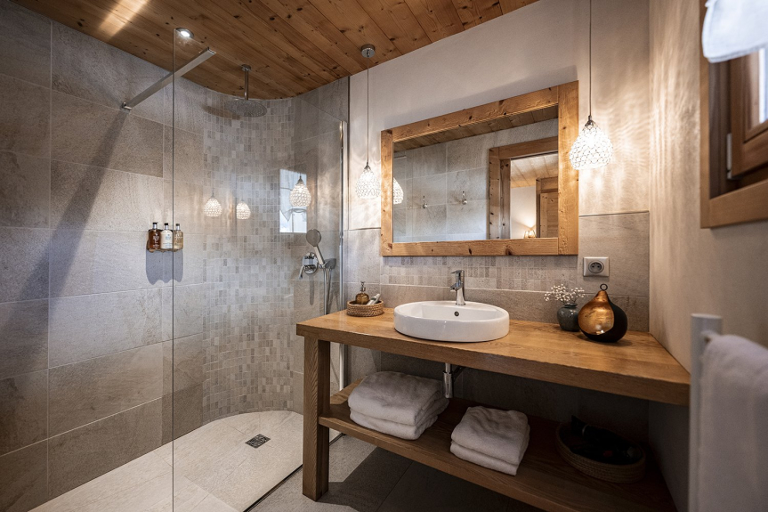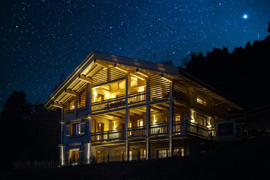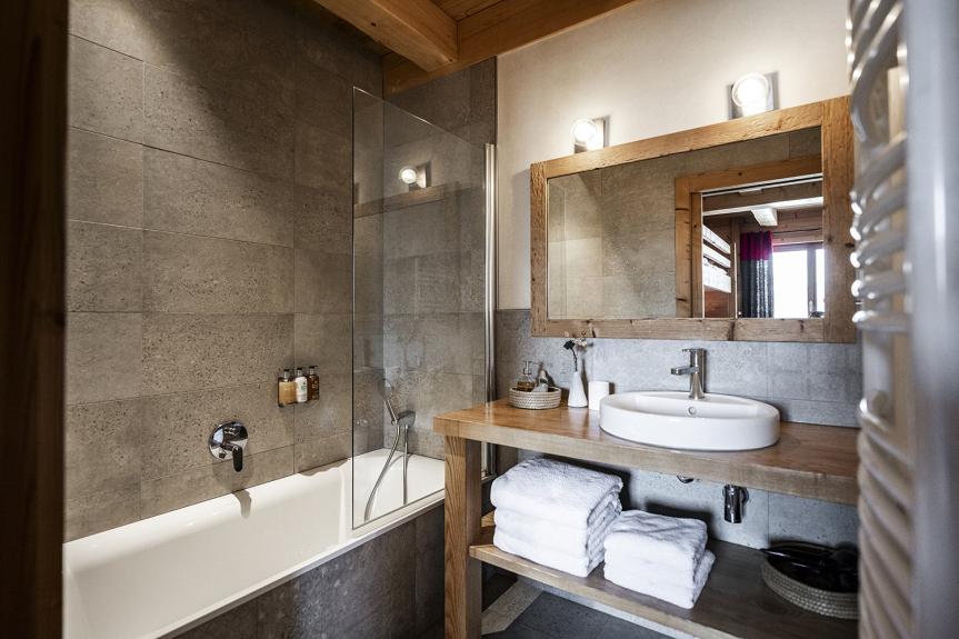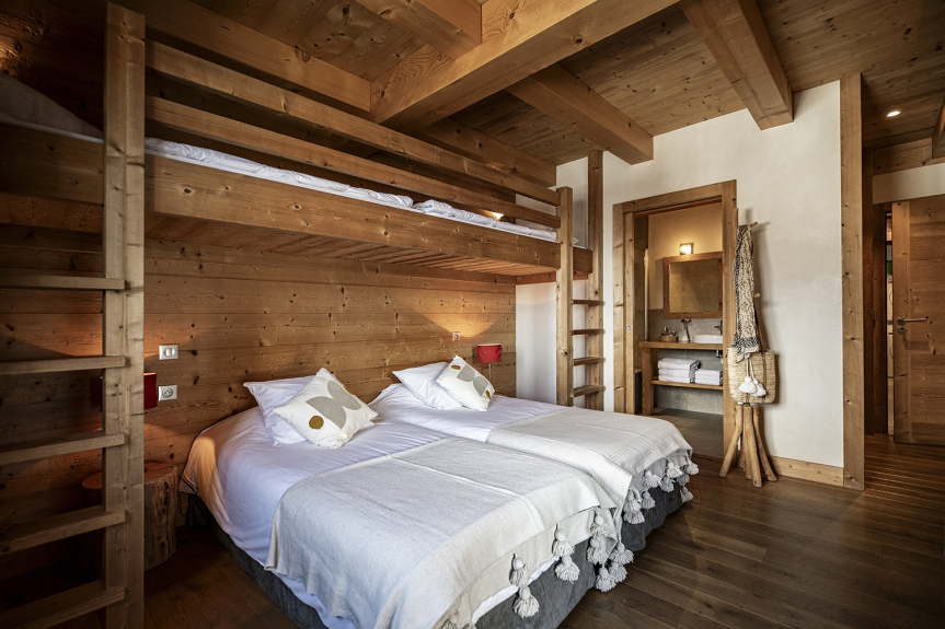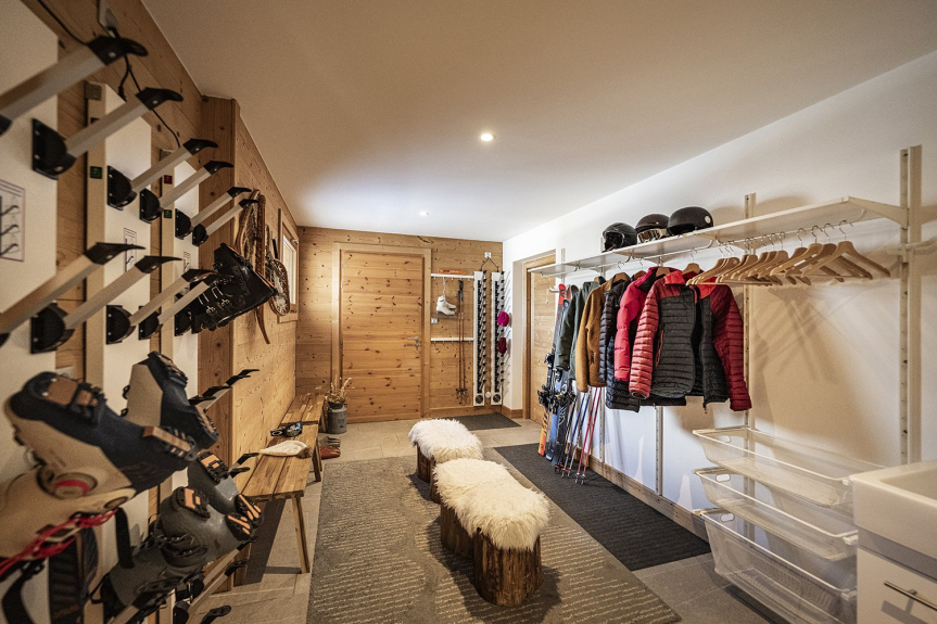 Chalet Celeste ha 5 camere da letto, ognuna con un balcone o una terrazza, tutte con una vista eccezionale sulle Alpi. Hanno tutte lenzuola di alta qualità, una TV 46', un armadio a muro e un bagno privato. L'area benessere comprende una Jacuzzi a 8 posti, una sauna a 6 posti e una doccia. Dotato di un deposito sci riscaldato, lo Chalet Celeste offre un accesso diretto alle piste. All'ultimo piano, sotto un magnifico tetto mansardato, si trova la zona giorno con una cucina completamente attrezzata, un soggiorno e un salone con un camino centrale sospeso e girevole. C'è una magnifica terrazza coperta con un tavolo per 15 persone e una zona lounge. Chalet Celeste ha anche 2 posti auto in un garage coperto sullo stesso livello, con accesso diretto alla zona giorno.