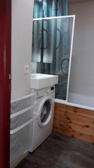Bagno con vasca e lavatrice, WC separato e doccia con WC.