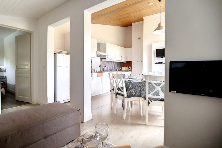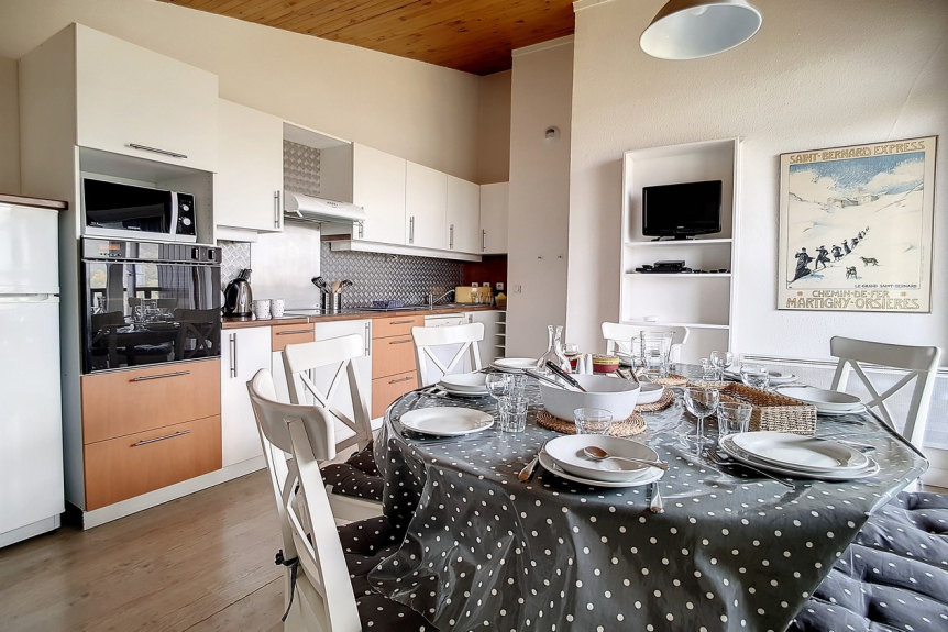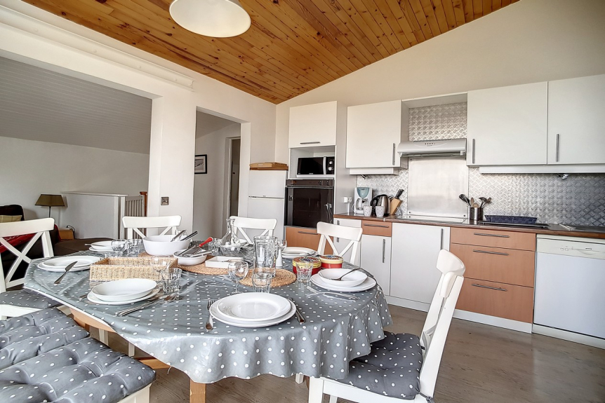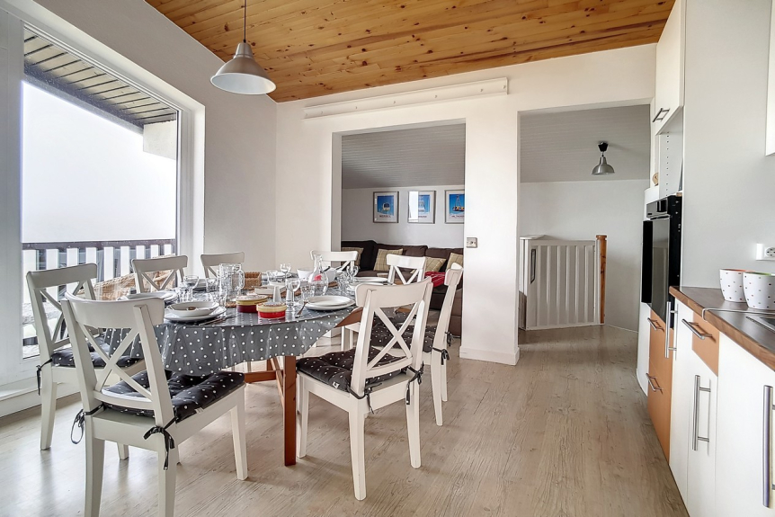 Bellissimo appartamento di 4 stanze su due piani di 66m² per 8 persone con 2 balconi esposti a ovest (al piano terra e al piano superiore). L'appartamento è al 3 ° piano senza ascensore in una residenza con gli sci. Ingresso ad Aigle.