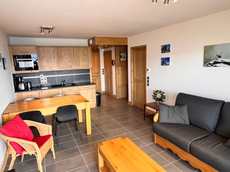 L'appartamento può ospitare un totale di 5 persone ed è spazioso e ben arredato. Le piste e il centro del villaggio sono a 5 minuti a piedi e troverete tutto il necessario per una vacanza perfetta.