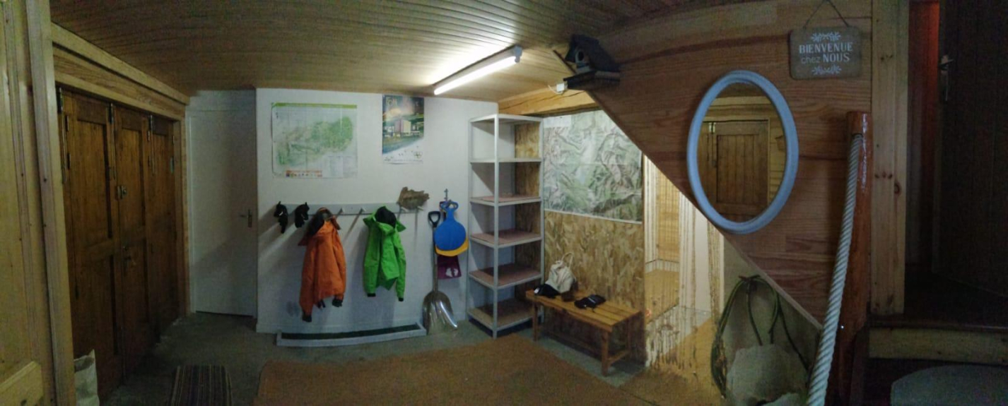 Piano terra: area giardino tutto intorno allo chalet - Un ingresso per riporre i vostri sci e scarponi (inverno) o mountain bike e qualsiasi altra attrezzatura sportiva per l'estate - un grande armadio - una lavanderia con lavatrice e asciugatrice - un bagno con WC - un annesso per vari depositi - una scala interna per accedere al 1° piano
