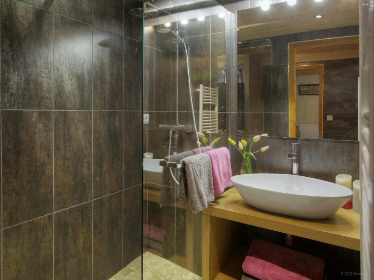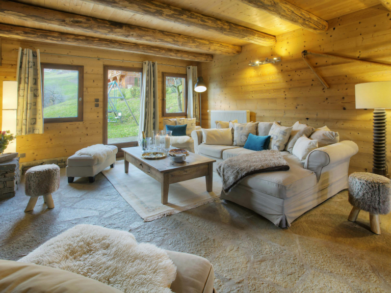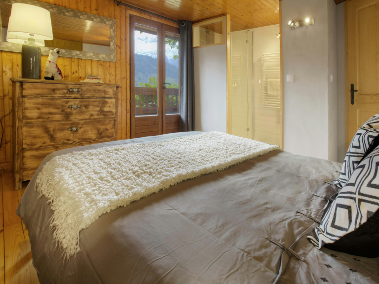Le due terrazze riparate su entrambi i lati dello chalet forniscono ulteriore spazio per le serate barbecue, cene all'aperto e forse un momento di relax nella vasca idromassaggio con la sua splendida vista sulle montagne. Sul balcone anteriore dello chalet c'è una lunga vite e un cespuglio di rose. Da qui si può godere della vista della catena montuosa degli Aravis.