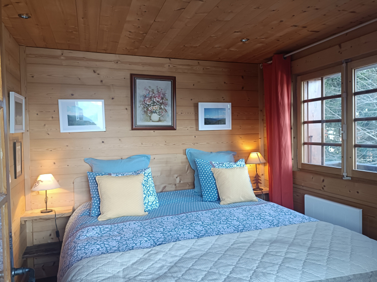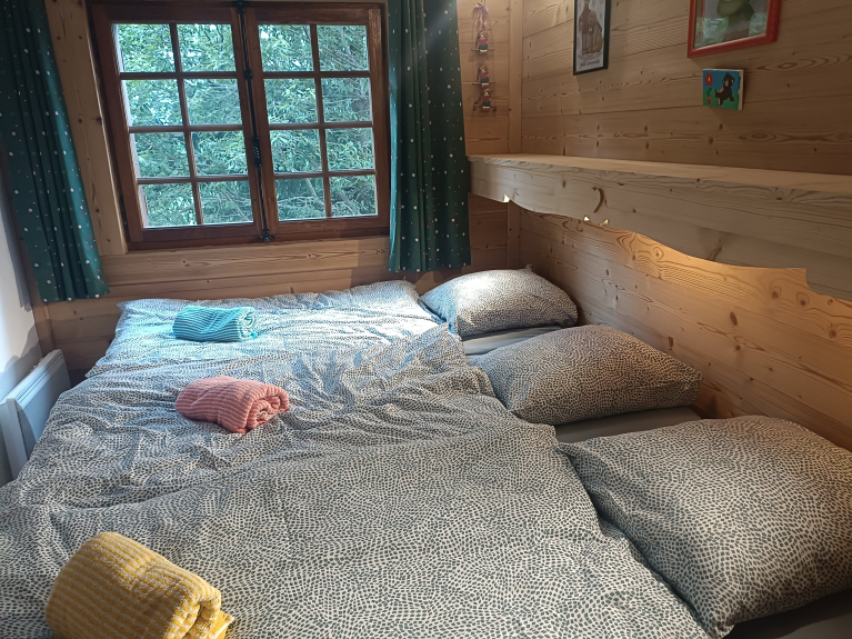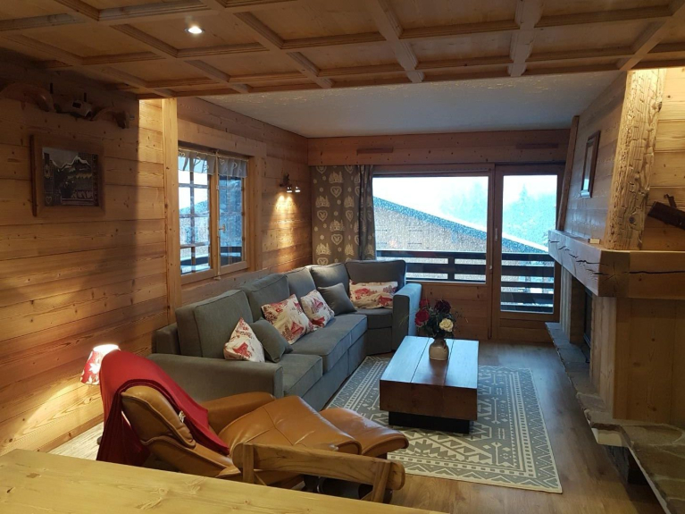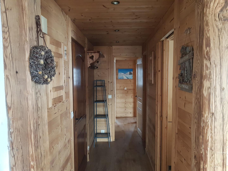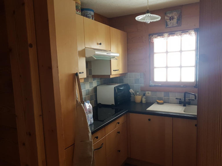 Ai piedi delle piste e vicino a un piccolo negozio di alimentari (Sherpa) possiamo ospitare cinque persone: Una camera con un letto matrimoniale + Una camera con tre letti (2 letti a castello e un letto singolo) Un bagno, una cucina completamente attrezzata, un soggiorno e una sala da pranzo con camino. Porte finestre che si aprono su un balcone (20 metri) con vista sulla catena delle Fiz e il Monte Bianco. La biancheria è fornita Garage e parcheggio, deposito sci e cantina