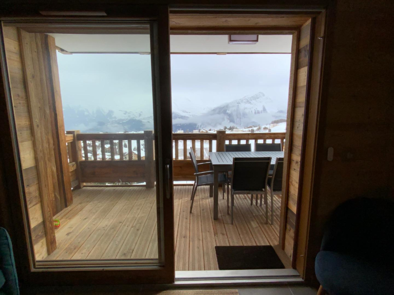 L'appartamento è di circa 59 m², nu (consegna febbraio 2020). Si trova al primo piano e ha un grande balcone rivolto a SUD che offre una luminosità e una vista eccezionale sulle Aiguilles d'Arves, le piste e la stazione.
