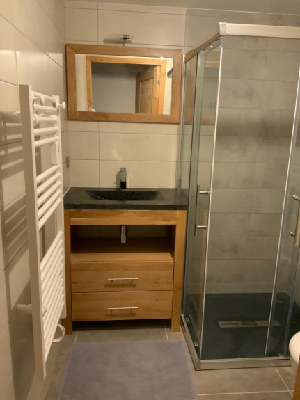 - Un bagno con doccia e toilette.