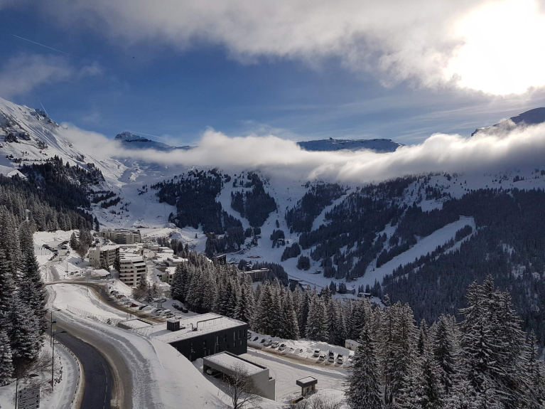 Residenza turistica a 5 stelle situata nel quartiere di Flaine Mont Soleil ai piedi delle piste e a circa 400 metri dai negozi. Posti auto coperti. Ascensori. Armadietti per gli sci.
