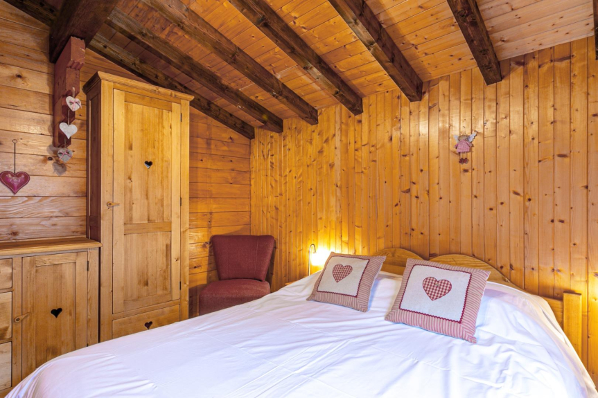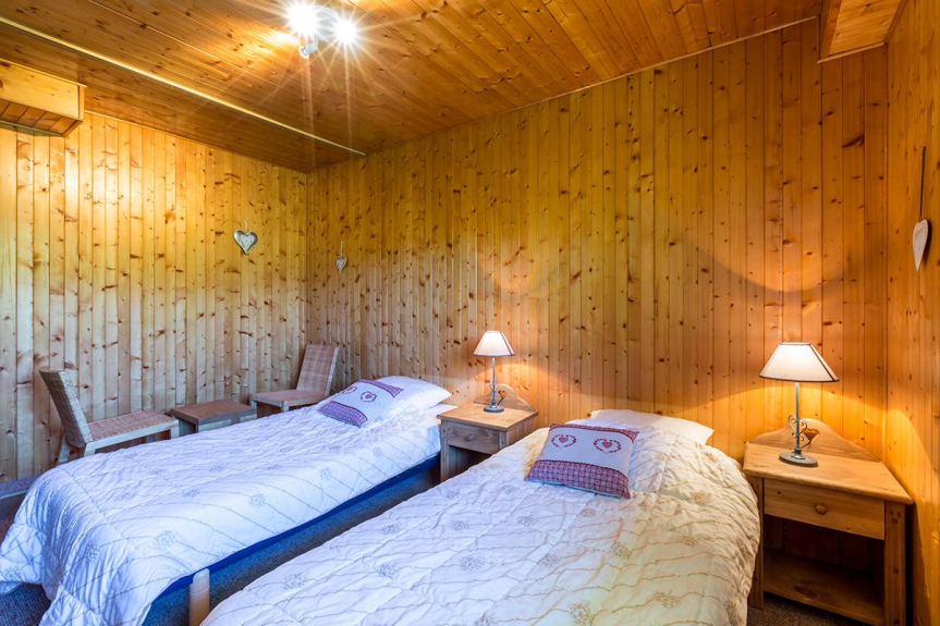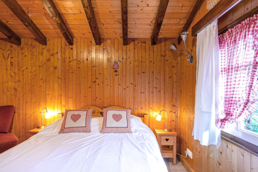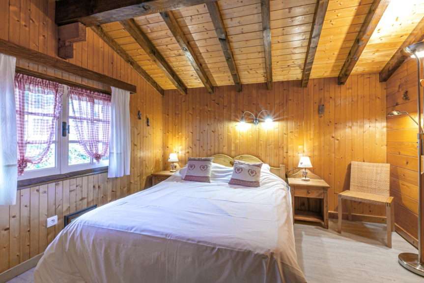 - Camera 3 (8,32 m²) : letto matrimoniale (140) con piumino, finestra nord, vista limitata sull'entrata dello chalet.