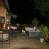 Grande terreno recintato di 1500 m² con tavoli da giardino, barbecue, sedie a sdraio.