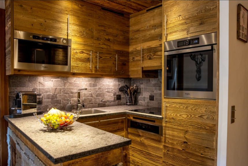 La cucina è dotata di forno, microonde/grill, frigorifero/congelatore, piano cottura a induzione, macchina per il caffè e macchina Nespresso, tostapane, bollitore, pentola a vapore e macchina per raclette e crêpe.