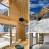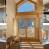 Un magnifico chalet con grandi finestre che offrono una vista panoramica sulle montagne circostanti.