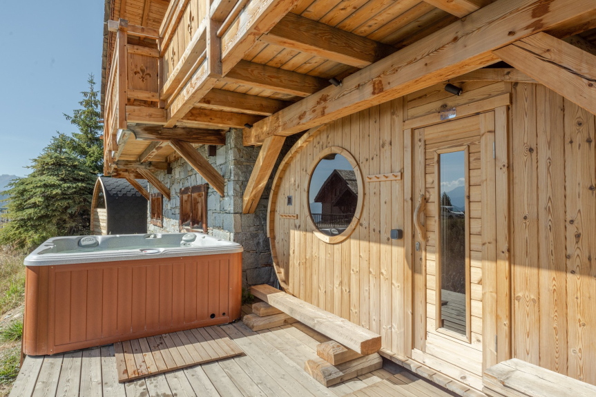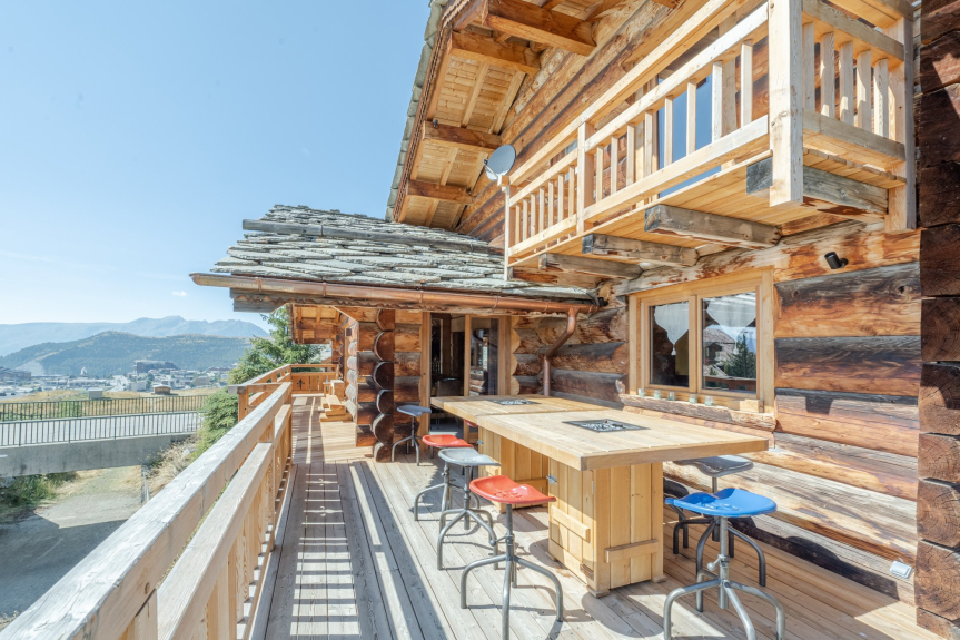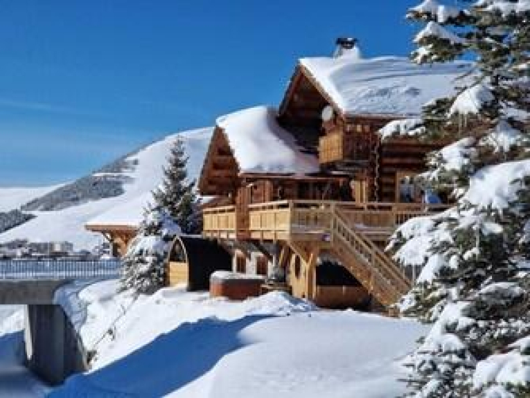 La nostra casetta di legno è situata a poca distanza dal centro della località, nel complesso "Les Chalets de l'Altiport", per cui potrete rilassarvi in un tranquillo ambiente di montagna e mettere gli sci davanti alla casetta.