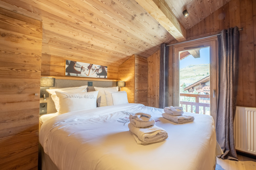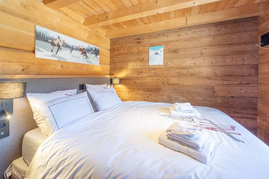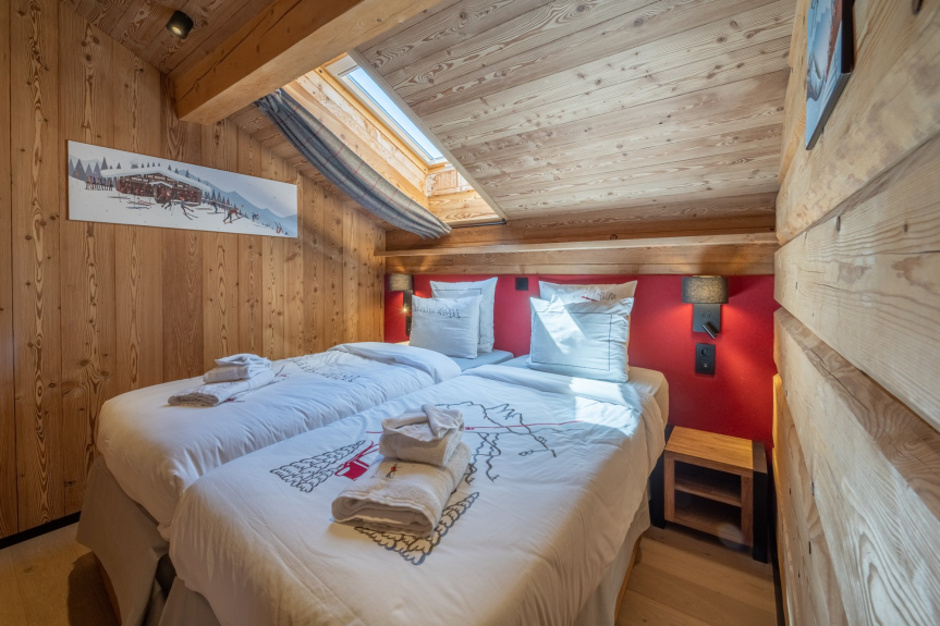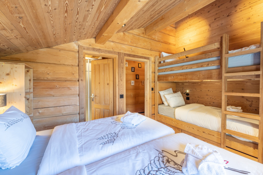 Nello chalet Tintin una delle 6 camere da letto (2 persone) può essere indipendente con angolo cottura e bagno (doccia, wc, lavabo) per accogliere baby-sitter, cuoco...