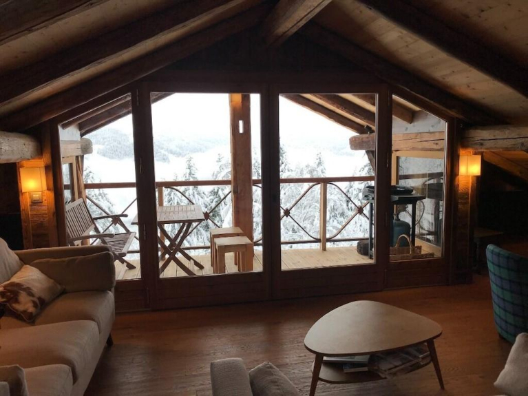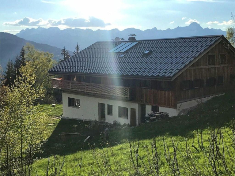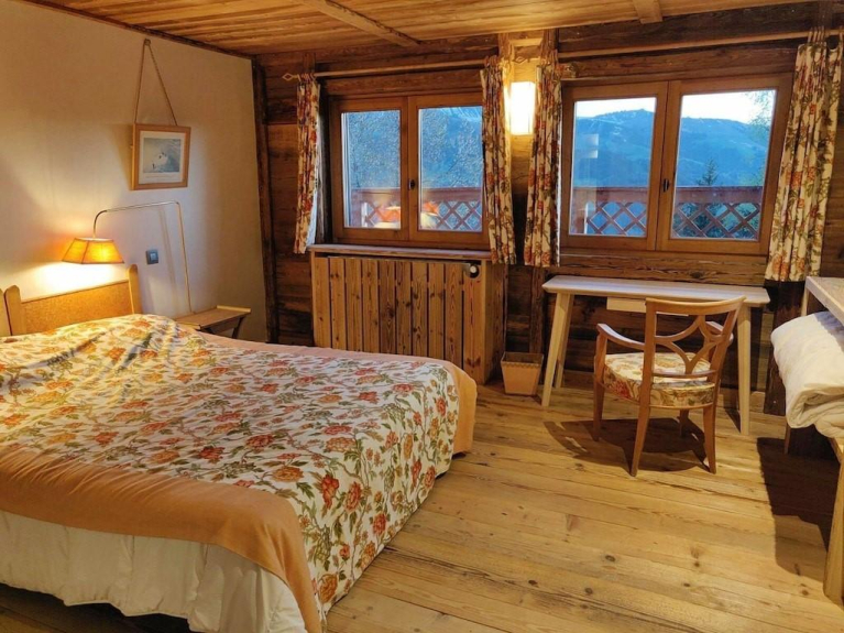 Questo grande chalet antico ha una magnifica vista sui Dômes de Miage da un lato e sulla catena montuosa degli Aravis dall'altro ed è perfettamente esposto al sole. È stato accuratamente restaurato nel 2017, e combina il fascino del legno antico con tutti gli elementi di modernità e comfort. Si compone di 2 appartamenti che possono essere utilizzati separatamente (10 letti per uno e 15 letti per l'altro) o combinati per ospitare fino a 25 persone.