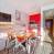 Cucina a incasso con 2 piastre, frigorifero, forno combinato e microonde, tostapane, bollitore e macchina da caffè.