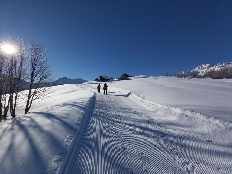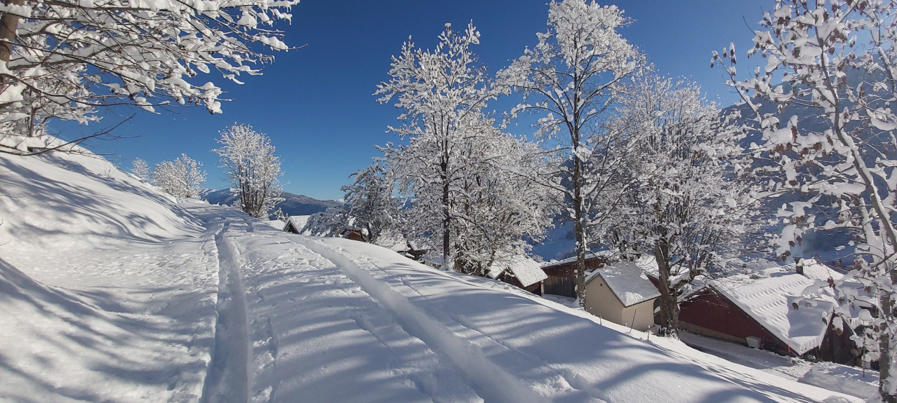 I percorsi per le racchette da neve partono di fronte allo chalet