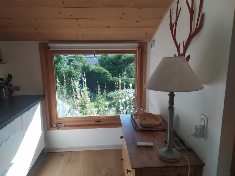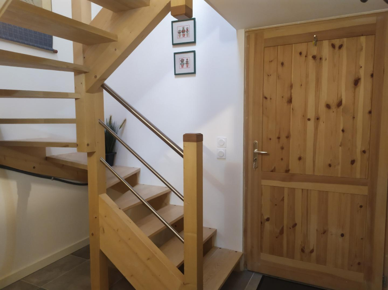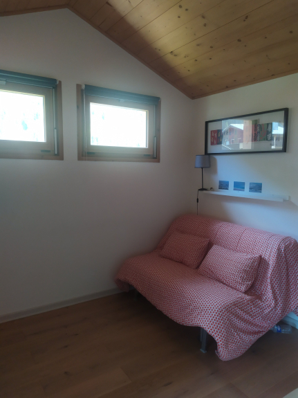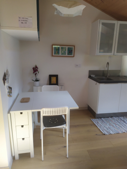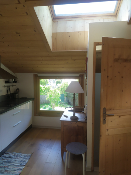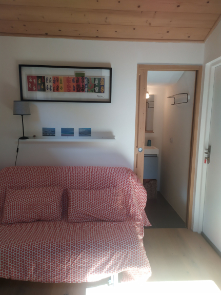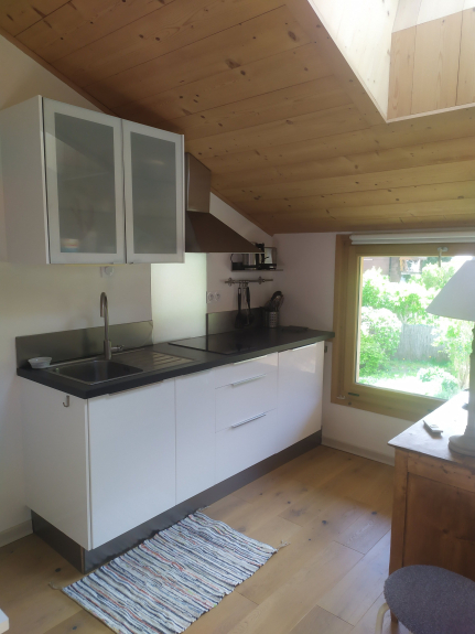 Grazioso monolocale situato a Les Bossons in uno chalet individuale in una zona tranquilla con vista sull'orto. Ingresso indipendente al piano terra che si apre su un comodo ingresso. Una scala conduce alla stanza principale dotata di un divano letto molto comodo (140 cm), una cucina ben attrezzata e un bagno con lavabo, doccia e toilette. Lo studio è molto luminoso. Possibilità di utilizzare il garage del proprietario per riporre biciclette, sci e lavatrice.