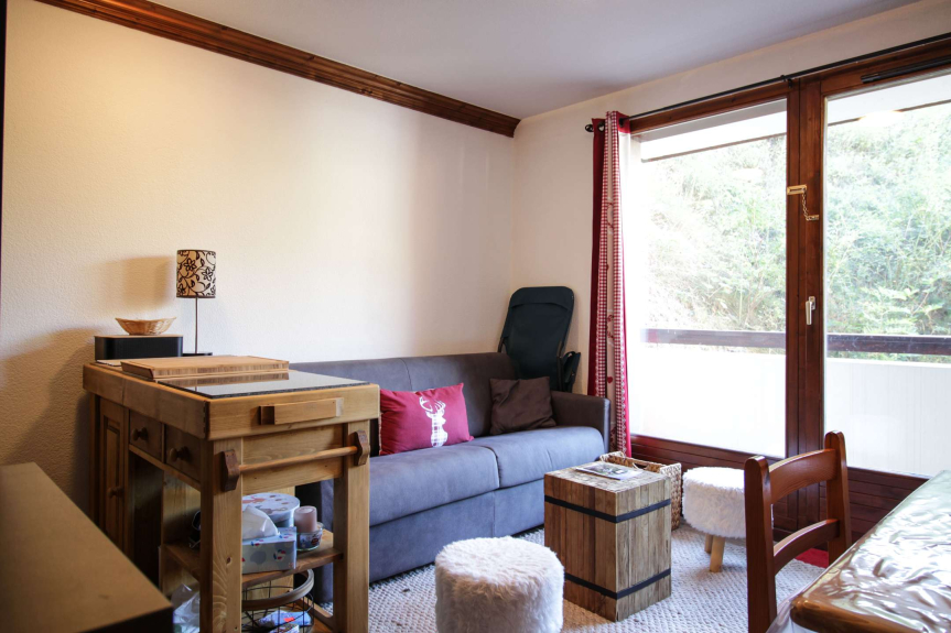 Soggiorno con divano letto 140, televisore, balcone esposto a sud