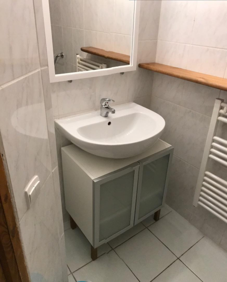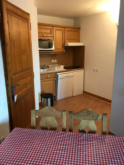 Appartamento di 40 m2, un bell'ingresso, 1 soggiorno con TV a schermo piatto, una cucina attrezzata che si affaccia sul soggiorno, piani cottura, microonde, frigorifero, lavastoviglie. Armadio per le stoviglie incluso necessario per l'affitto. Macchina per il caffè.