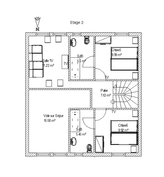 Disposta su 3 livelli, è composta da 7 camere da letto (3 matrimoniali e 4 doppie, ciascuna con bagno e TV), 1 soggiorno a cattedrale con stufa, grande tavolo conviviale che può ospitare fino a 14 persone, cucina completamente attrezzata e sala TV sul soppalco.