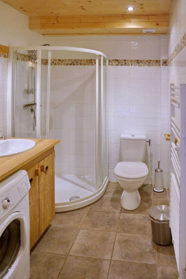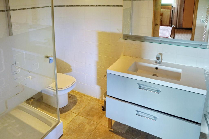 - 1 camera al piano terra con 1 letto da 160 (2 persone) + 1 letto a castello da 90 in un angolo chiuso in montagna + due bagni con doccia e WC