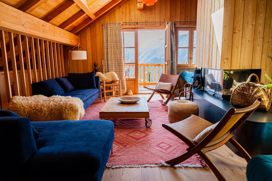 Un ampio soggiorno accogliente con camino che si apre su un balcone esposto a sud e a ovest con una vista mozzafiato, una grande cucina/sala da pranzo anch'essa dotata di camino e aperta su un balcone; la cucina aperta è completamente attrezzata (lavastoviglie, frigorifero, congelatore, forno a ventilazione, forno a microonde, macchina da caffè Nespresso, robot da cucina multifunzionale, pierrade, raclettes).