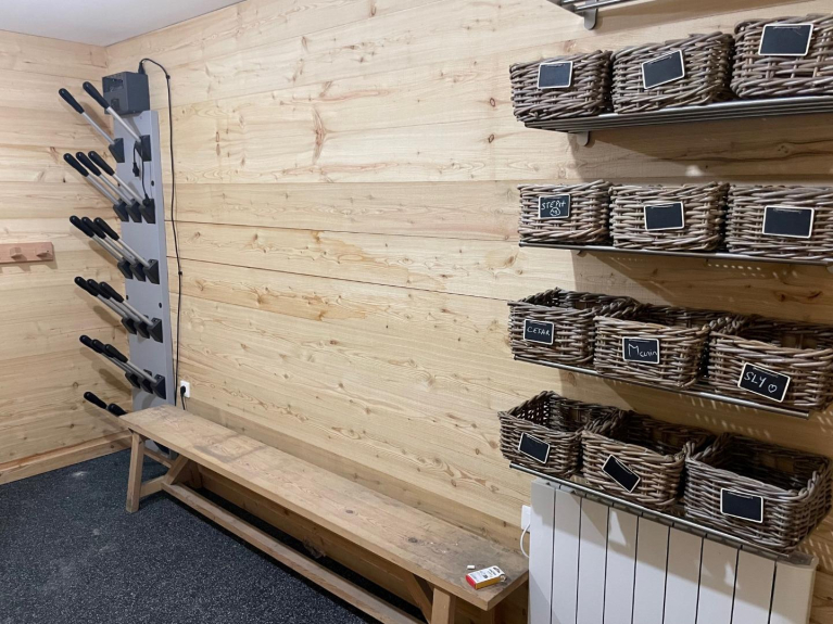 - un deposito sci con panche, armadietti e asciuga scarponi al livello della partenza degli sci