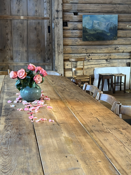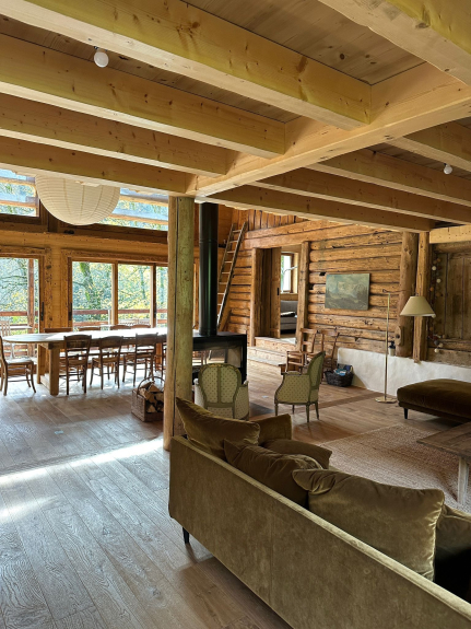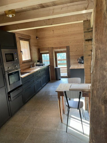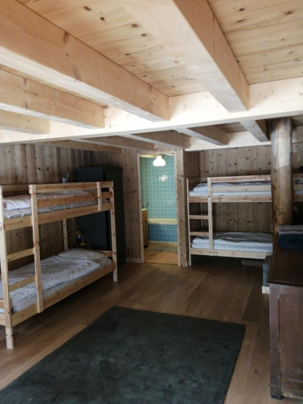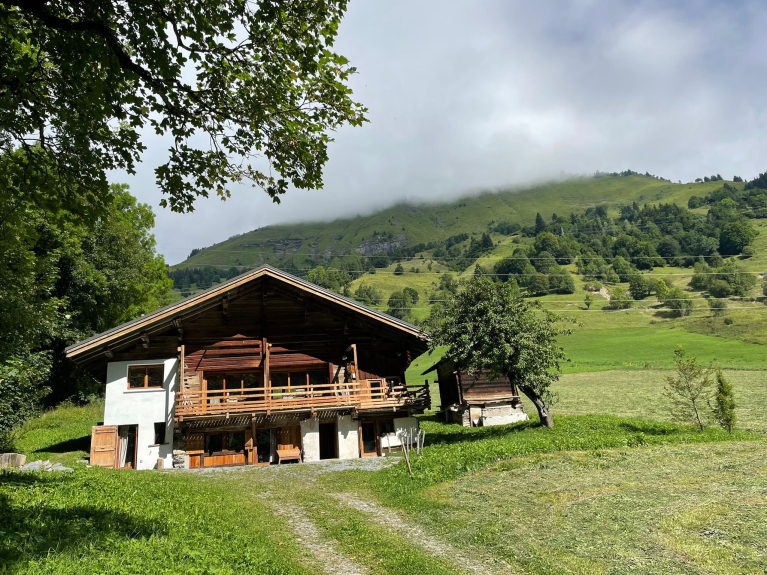 Circondato da prati e natura, questo vecchio fienile è stato ristrutturato in uno splendido chalet che può ospitare 14 persone.