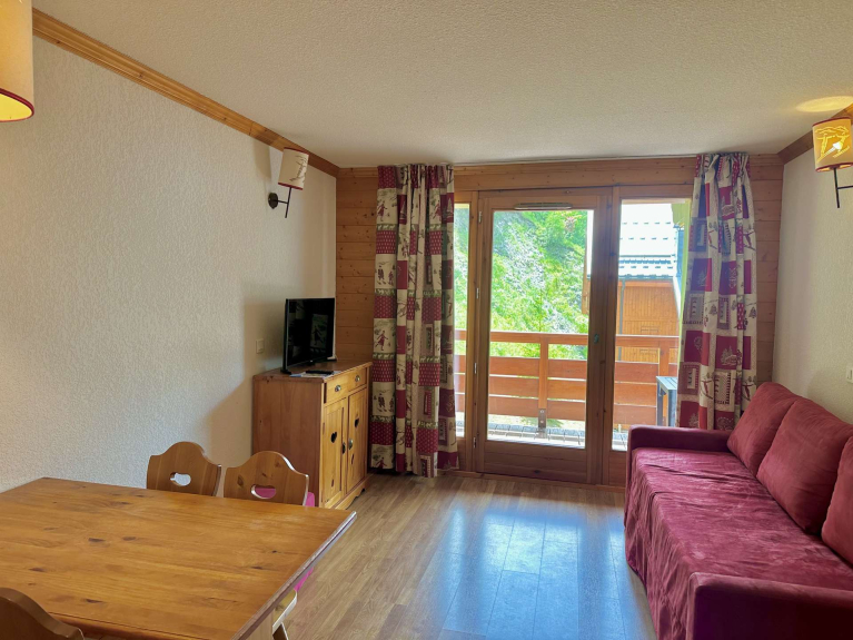 Soggiorno con 1 divano Rapido per 2 persone 140, televisione. Balcone esposto a SUD