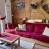 Soggiorno luminoso: divano trasformabile (140), 2 poltrone, TV a schermo piatto, stazione musicale per iPad, iPhone e libri e DVD (per tutte le età).