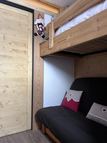 CAMERA DA LETTO 2: divano letto estraibile (140), 1 letto a castello (90), culla disponibile su richiesta.