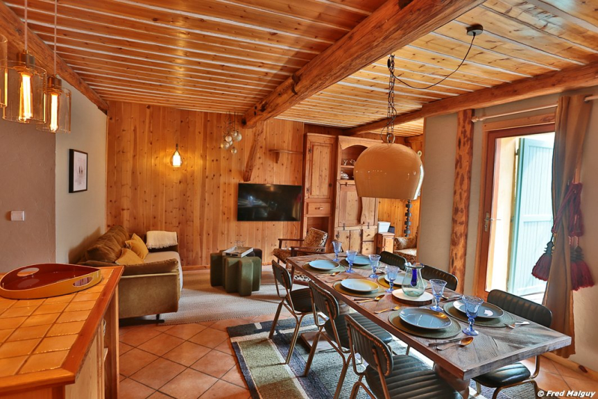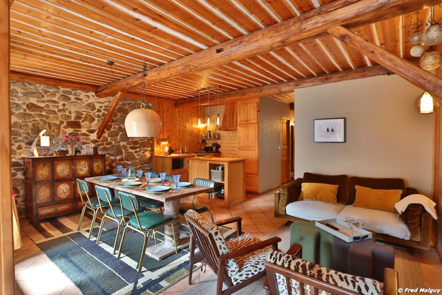 Grazioso trilocale di 58 m2 per 4 persone, esposto a sud e non affacciato, nuovissimo, al 1° piano di una piccola casa nel cuore del vecchio villaggio.