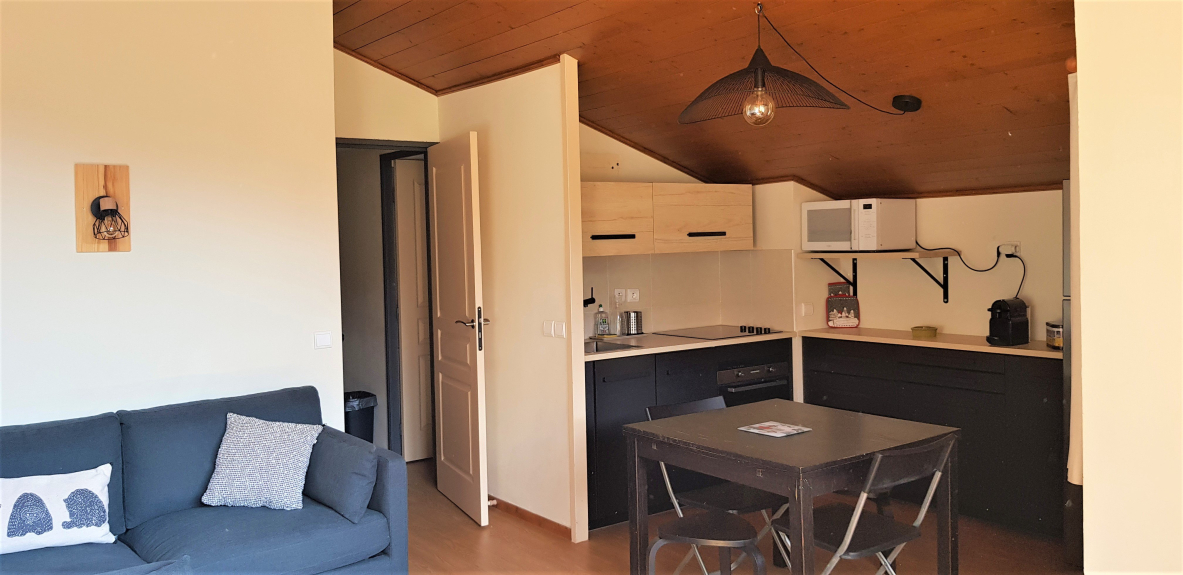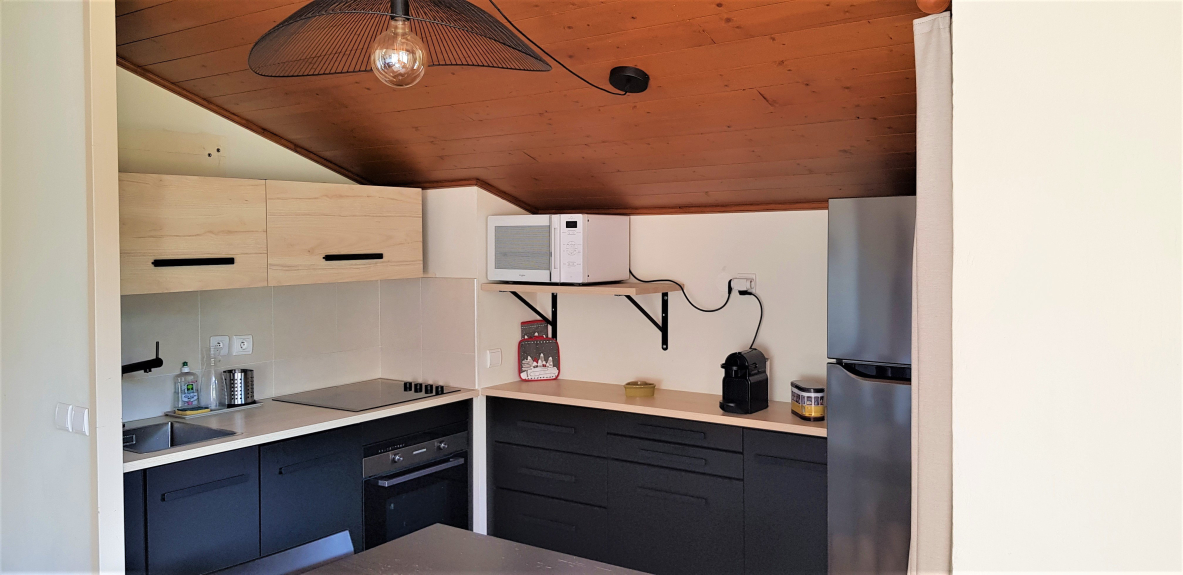 La cucina è molto ben attrezzata con forno a pirolisi, grande frigorifero, congelatore, microonde, lavastoviglie, piano cottura a induzione a 4 fuochi e macchina da caffè Nespresso.