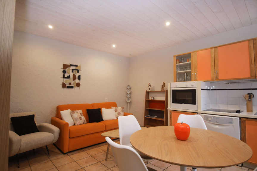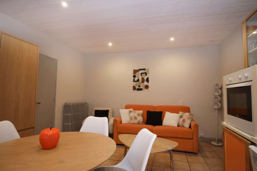 Appartamento situato nel B7 del piano del resort, ai piedi della funivia del Sétaz, 1° piano senza ascensore, superficie di circa 34 m2, composto da: