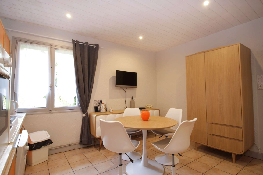 Zona cucina: forno, frigorifero, piano cottura in vetroceramica a 4 fuochi, lavastoviglie, microonde. 1 caffettiera a filtro, 1 Senséo, 1 bollitore, 1 tostapane.