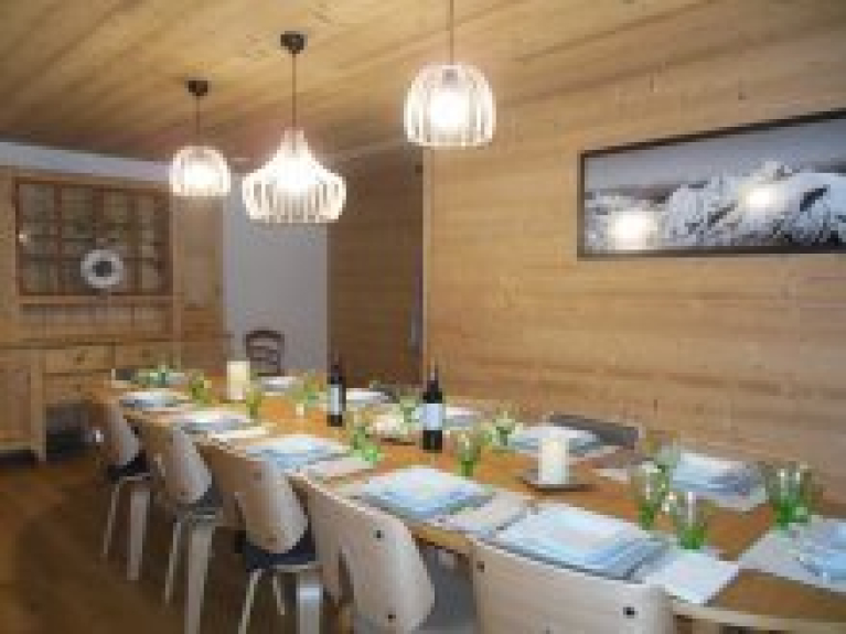 Questa spaziosa zona giorno unisce tutte le qualità di un affascinante chalet a 4 stelle, combinando il carattere antico dei mobili di montagna con il comfort contemporaneo di uno chalet di montagna.