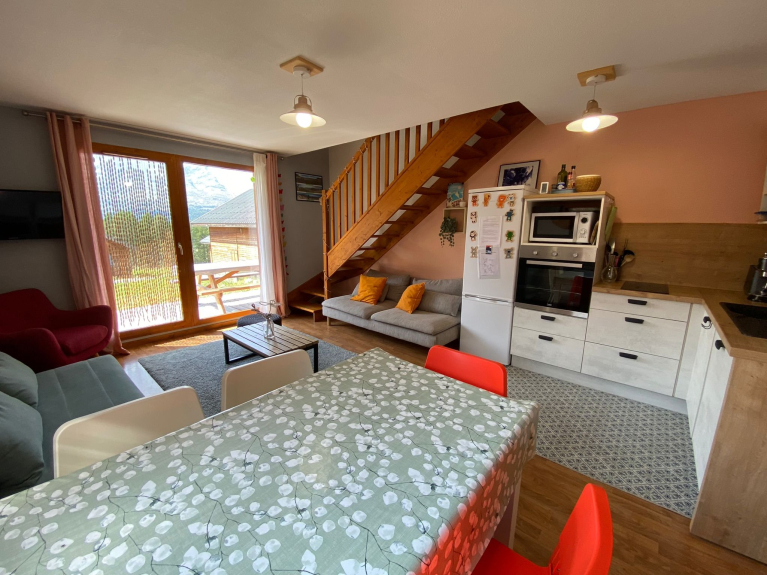 Questo chalet, in posizione tranquilla ed esposto a sud-ovest, è stato ristrutturato e dispone di un piacevole soggiorno con una cucina moderna.