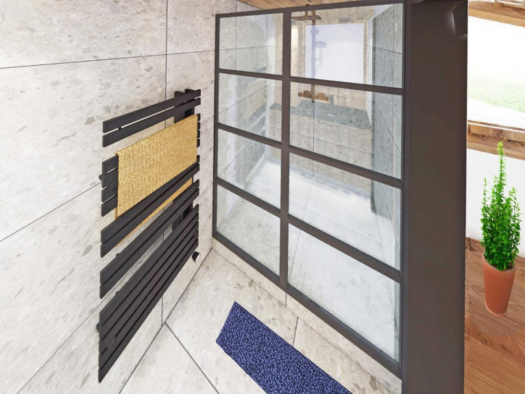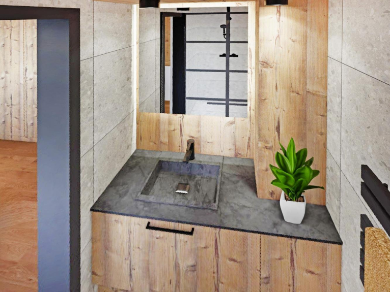 Una camera per 3 persone con 1 letto matrimoniale (160 x 190 cm) e un materasso a soppalco (90 x 190 cm), con accesso tramite scala, a proprio rischio. Bagno con doccia, lavabo e WC separato. Accesso alla terrazza.