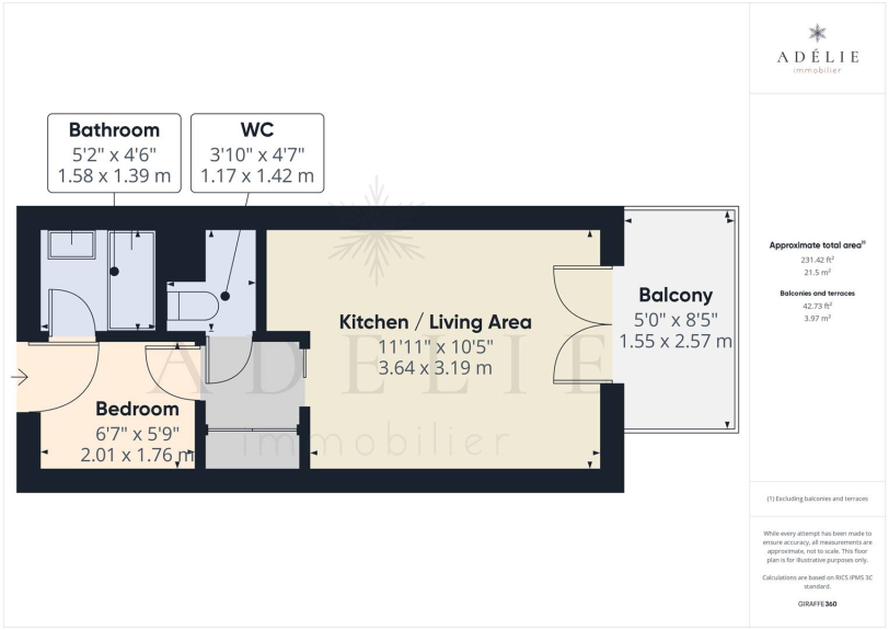 BEL310: STUDIO 4 pers di 22m2 completamente ristrutturato, classificato 2*.