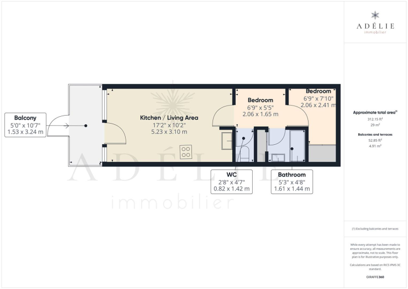 CHRE03: cabina monolocale di 27 m2 per 4 persone, classificata 2* e 3 Cimes dal marchio della località.