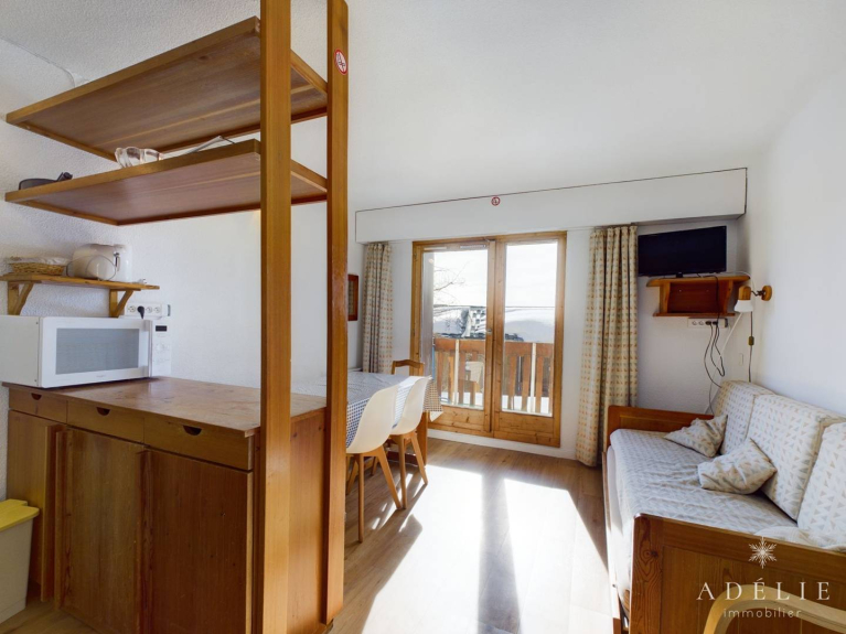 BEL104: CABINA STUDIO 4/6 pers 29 m2 classificata 2* e 2 Cimes au Label Station situata al livello del giardino, un livello sotto gli armadietti degli sci.
